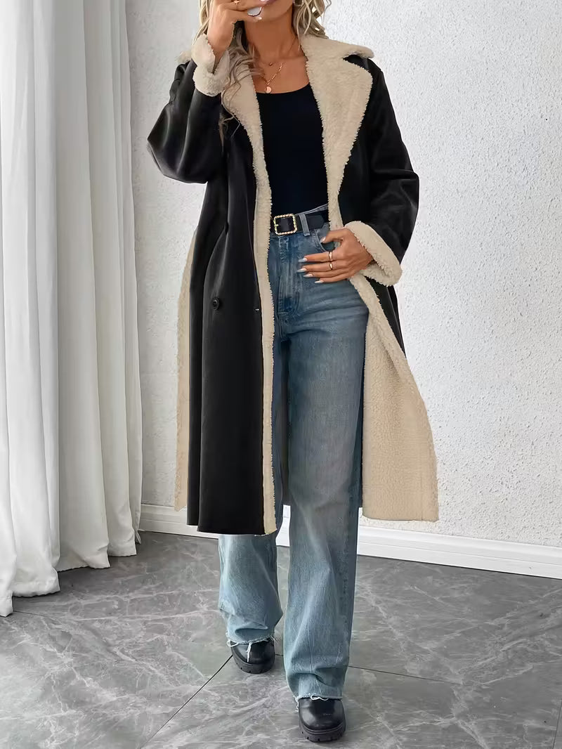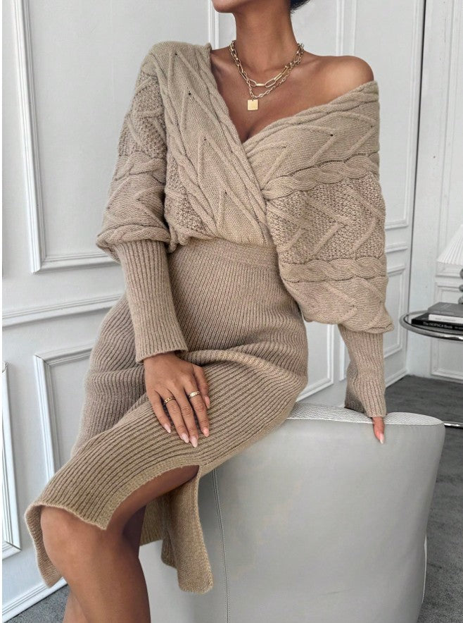 Damen A-Linie Tailliertes Rundhals Langarm Strickkleid
